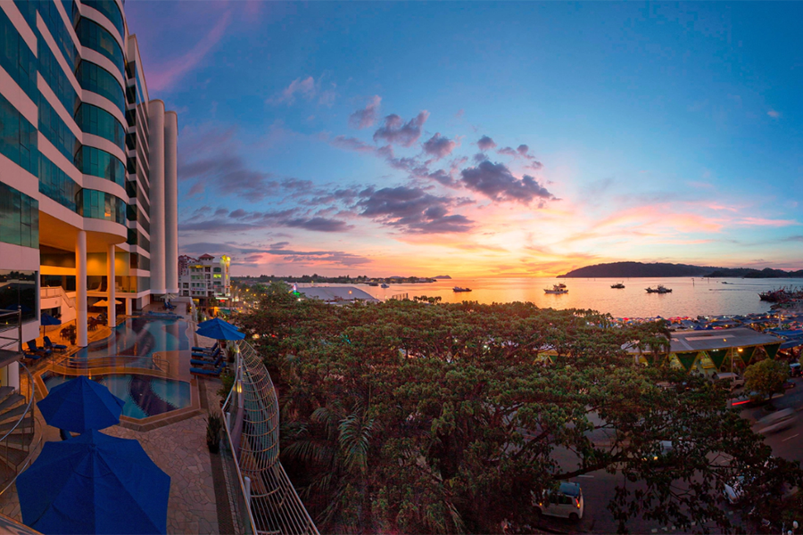Offering stylish accommodations with sea or city views, the hotel blends modern amenities with local Sabah-inspired design and cultural touches.