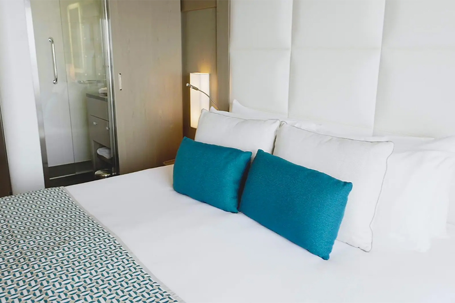 The Superior Staterooms on Deck 3 offer a cozy yet stylish retreat with a picture window instead of a balcony. They include a king-size bed that can be converted into twin beds, a desk, and a spacious ensuite bathroom with a walk-in shower. Guests can enjoy a well-stocked minibar, a flat-screen TV, and individual climate control for added convenience.