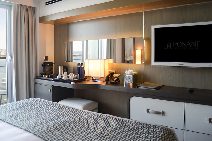 The staterooms aboard L’Austral are designed to blend modern sophistication with luxurious comfort. Each stateroom features a sleek, contemporary design with soft, neutral tones, high-end materials, and thoughtful amenities, ensuring a relaxing stay.