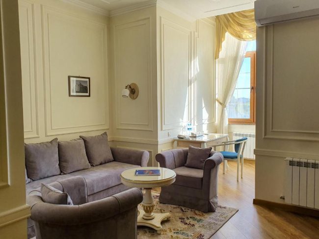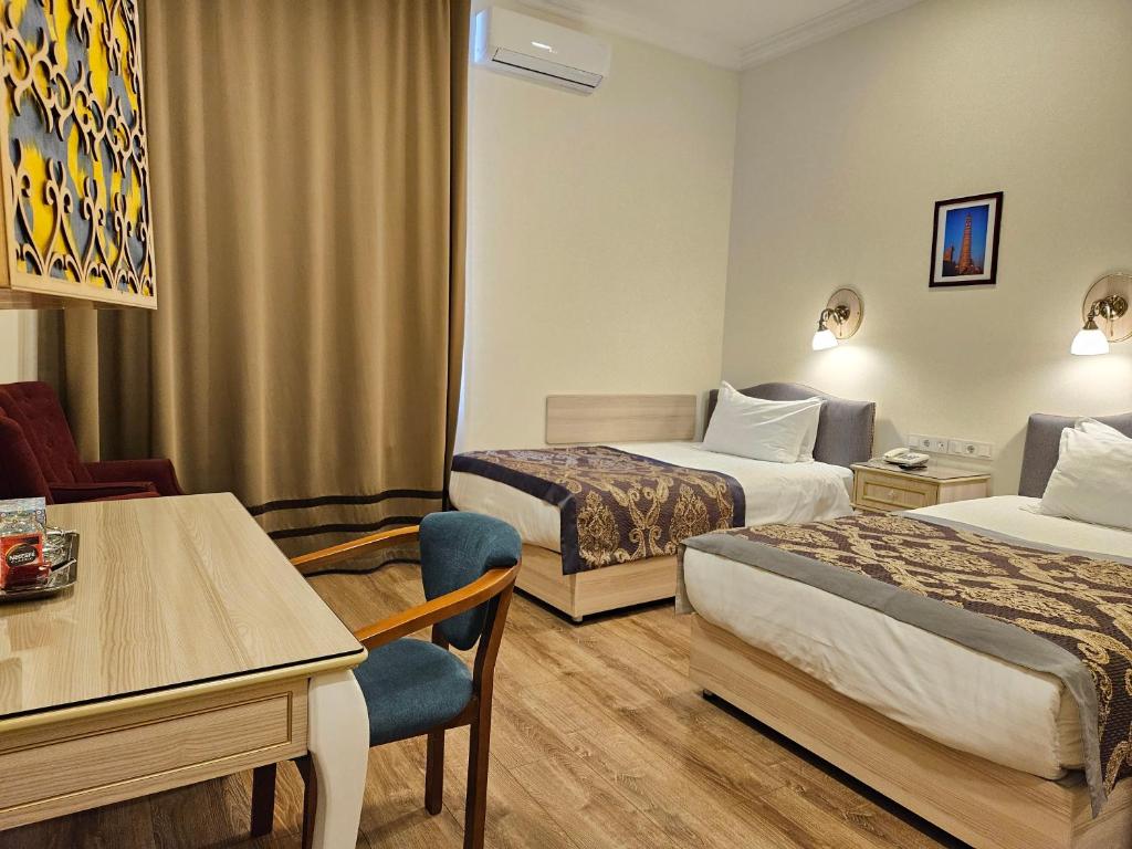 Guests can enjoy a buffet breakfast featuring fresh fruit, pastries, and hot dishes, while the in‑house restaurant serves a selection of Uzbek, European, and international cuisine. 24‑hour reception, laundry services and attentive staff, all contribute to a seamless stay.